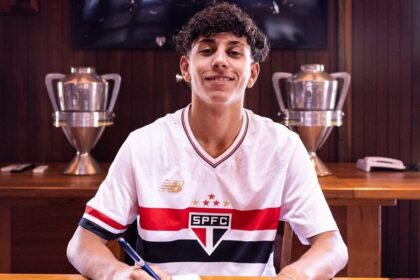 O São Paulo assinou o primeiro contrato profissional com o meia Kauã Edmar, de 16 anos, jovem que começa a se destacar na categoria sub-17 do clube. O vínculo tem prazo de três anos, até setembro de 2028. Para se proteger (teoricamente) do assédio europeu, o Tricolor estipulou a multa cont...